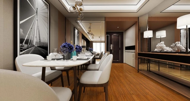 木質(zhì)元素在現(xiàn)代家居空間中的完美應用,地板與家具完美分割空間,以純粹的木元素打造生活的品與質(zhì)。