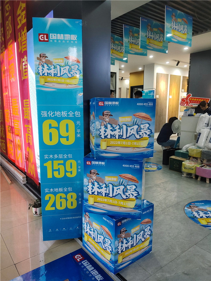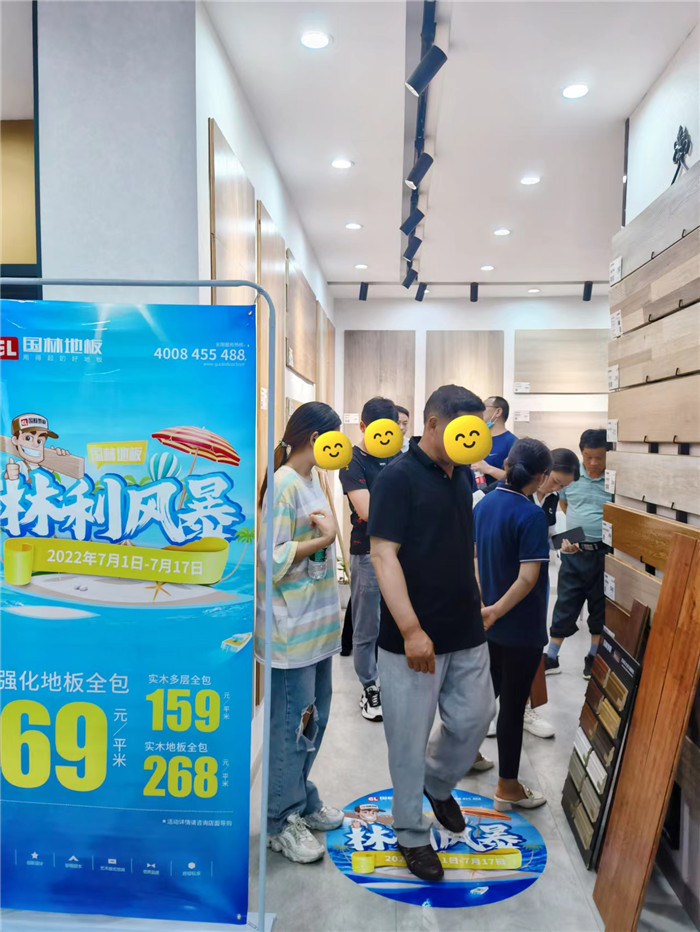 7月2日,國(guó)林地板林利風(fēng)暴活動(dòng)在合肥五里廟市場(chǎng)正式開(kāi)啟!雖然7月驕陽(yáng)似火,室外溫度高達(dá)40度,但也這也抵擋不住顧客對(duì)國(guó)林地板的熱情。