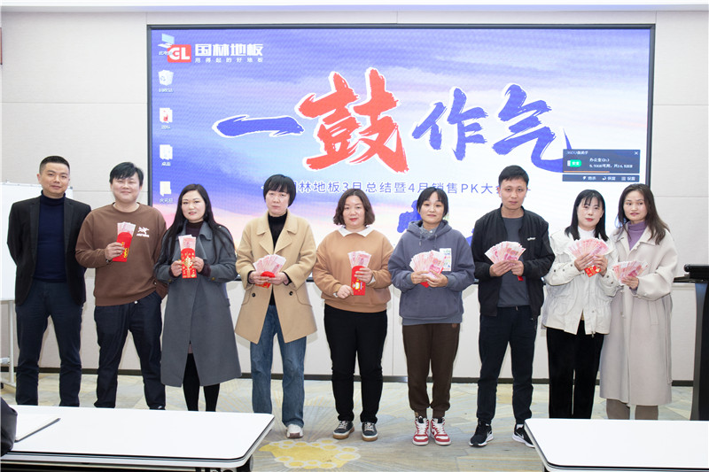 坤總針對(duì)3月份及1季度任務(wù)完成的情況存在的不足與問(wèn)題進(jìn)行了分析,對(duì)國(guó)林家人3月份做出的成績(jī)表示肯定。卓越的成績(jī)來(lái)之不易,表彰不僅是對(duì)努力付出、突破自我的嘉許,更是激勵(lì)國(guó)林地板全體人員奮力拼搏的動(dòng)力。在全場(chǎng)熱烈的掌聲中,國(guó)林地板領(lǐng)導(dǎo)向3月完成PK目標(biāo)的家人頒發(fā)了獎(jiǎng)金。過(guò)去的終將會(huì)過(guò)去,未來(lái)仍需努力,希望大家鼓足干勁,秉著不屈的精神和必勝的信念再接再厲,勇創(chuàng)佳績(jī)。