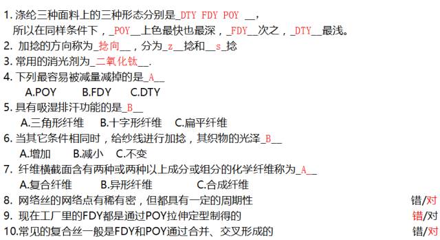 由于加工流程和工藝的不同,DTY、FDY、POY的纖維內部大分子結構排列是不同的,結晶度也完全不同,DTY二次加熱,結晶度最高,POY最低。染色的時候,結晶度高的上色就難。所以如果在同一塊面料中,同時有DTY、FDY、POY的話,POY顏色最深,DTY最淺。這個對以后開發面料時候應該考慮的一個因素。