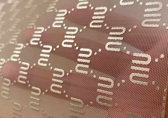 此款網(wǎng)眼布是燙金工藝,燙金網(wǎng)布是以滌綸、錦綸等化學(xué)纖維為原材料再經(jīng)過燙金工藝(將布料放在燙金機上進行高溫等方式處理)處理后制成,一般布面上會帶有花紋和圖案的這類網(wǎng)眼布統(tǒng)稱為燙金網(wǎng)眼布。